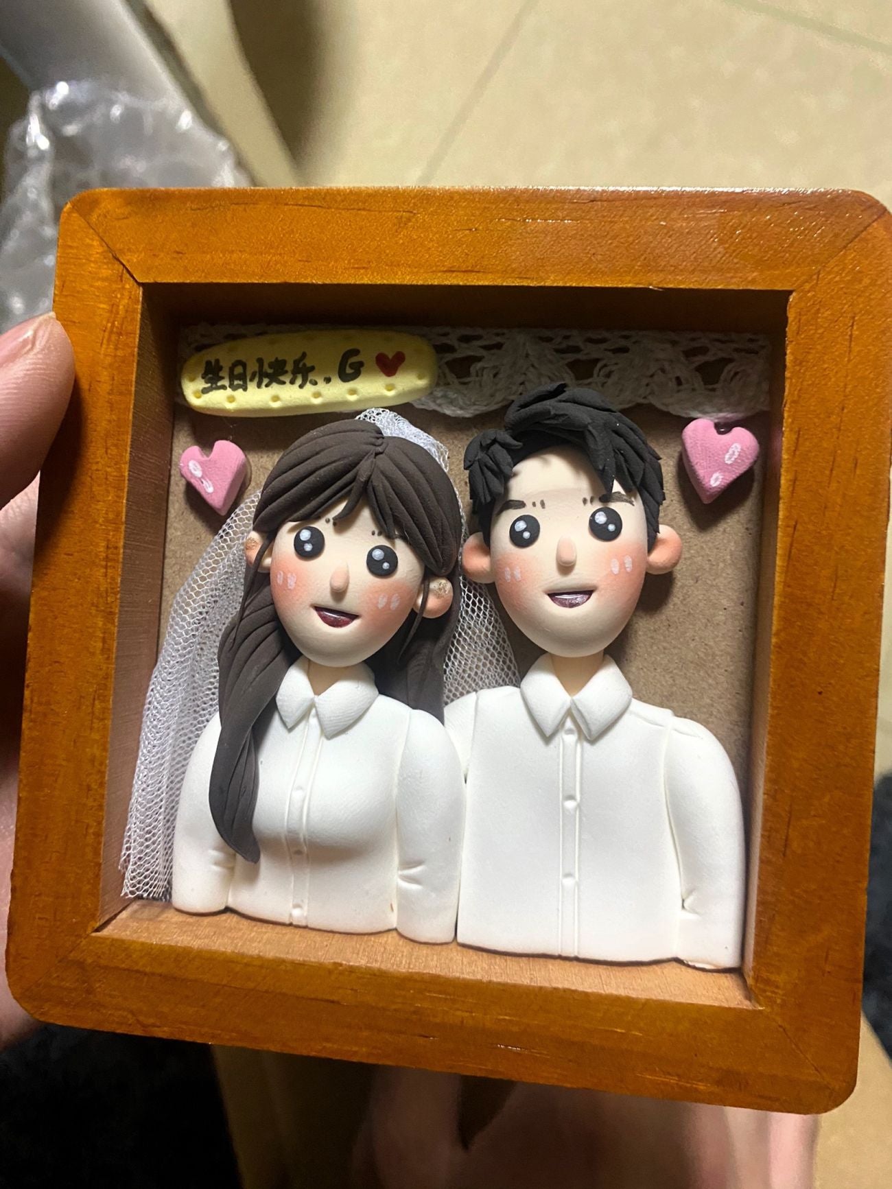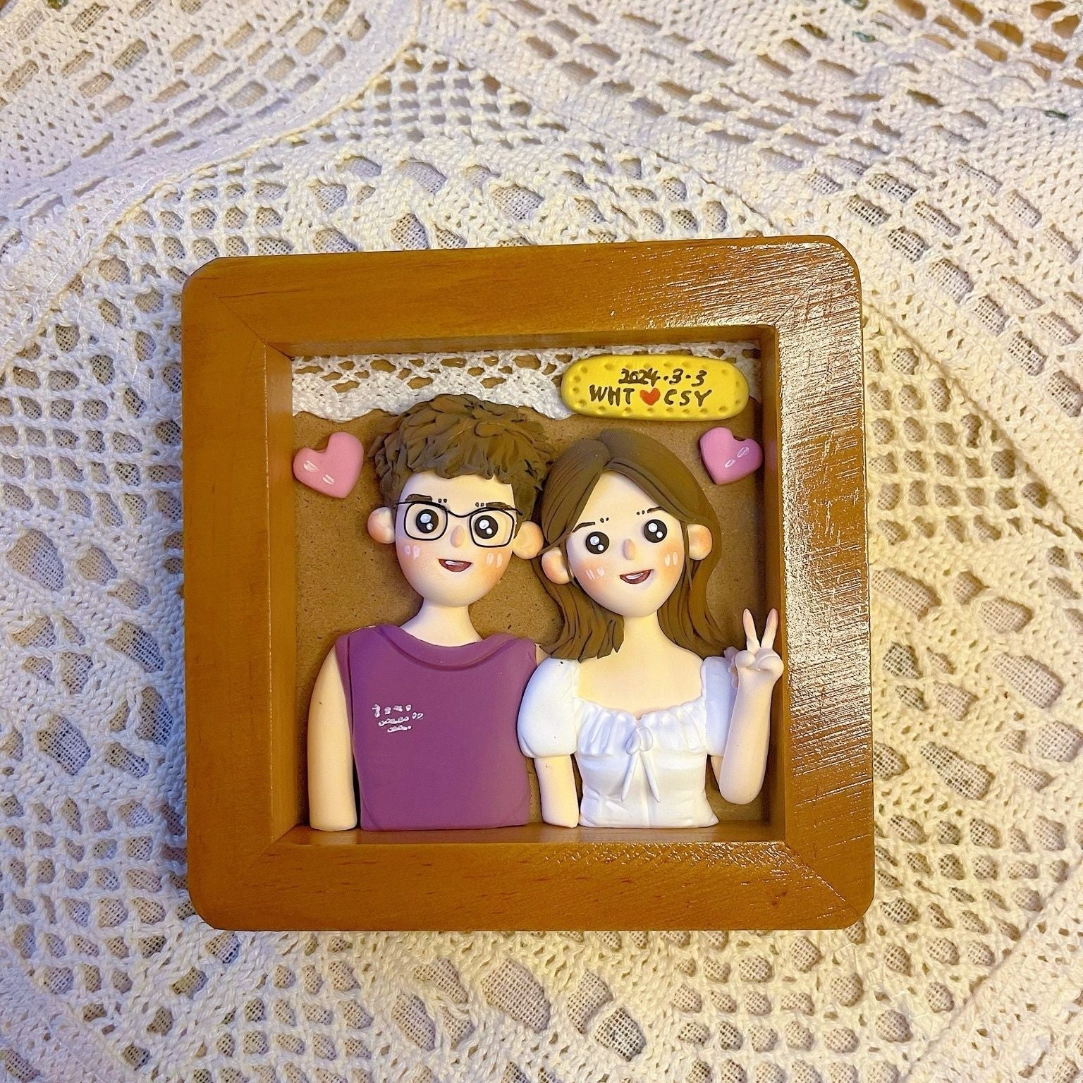 Custom Clay Cartoon Figurine Photo Frames Wedding Anniversary